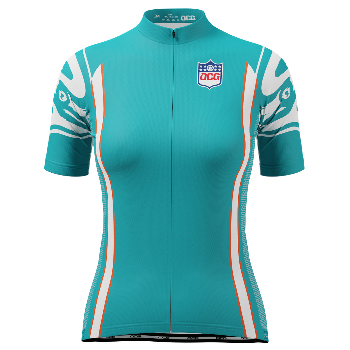 OCG and OCG Originals have come together to bring the Women's Miami Football Short Sleeve Cycling Jersey so you can roll up to your next ride in style and feel the comfort of a female cut jersey.