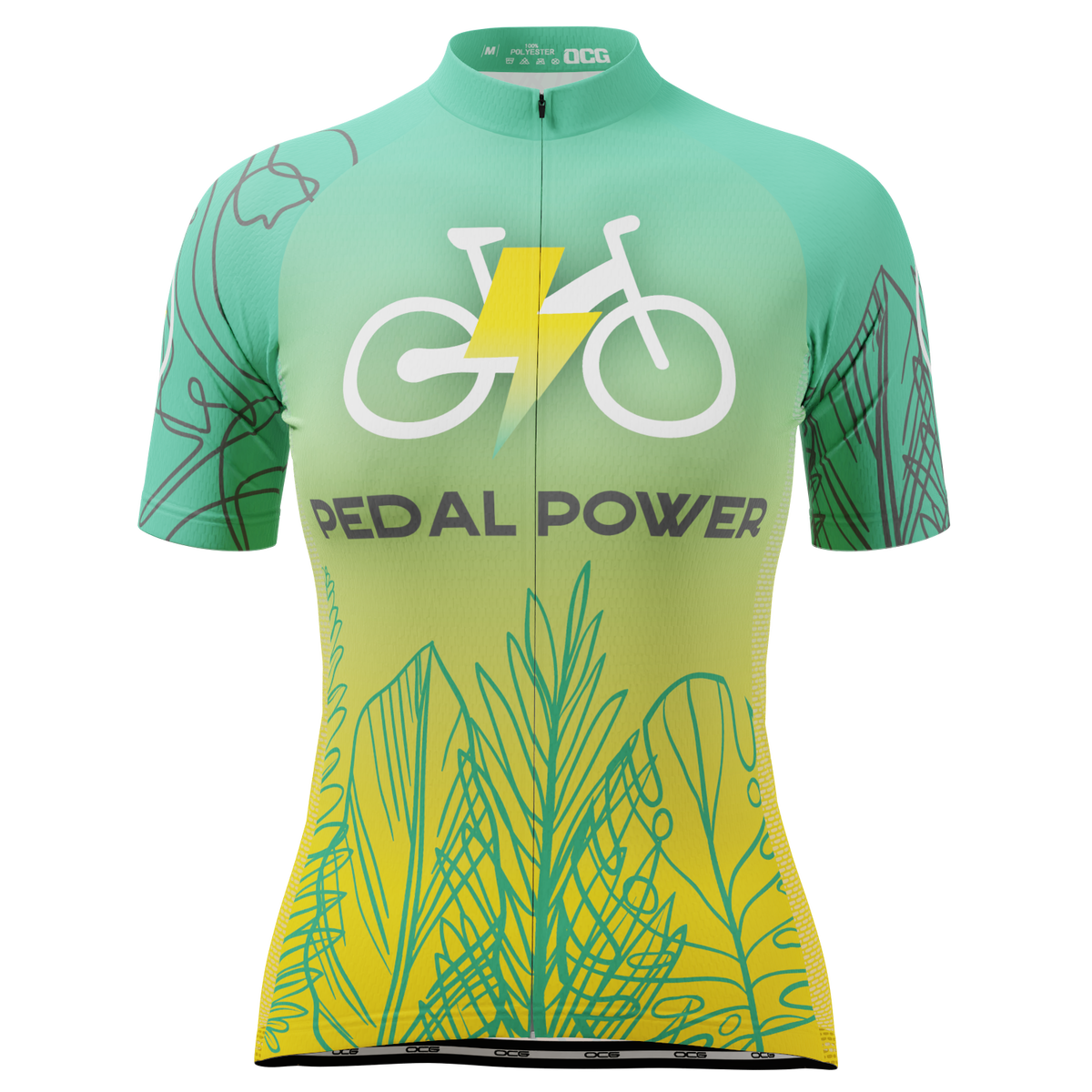 OCG presents the Women's Pedal Power Short Sleeve Cycling Jersey so you can roll up to your next ride in style and feel the comfort of a female cut jersey.