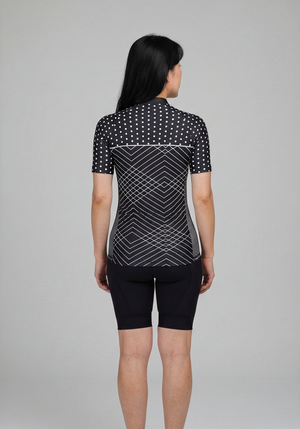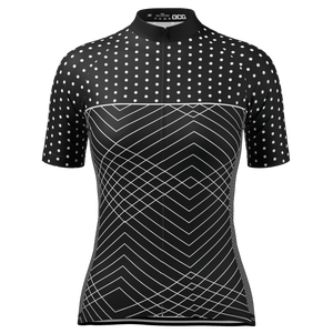 Women's White Polka Dots on Black Zigzag Short Sleeve Cycling Jersey