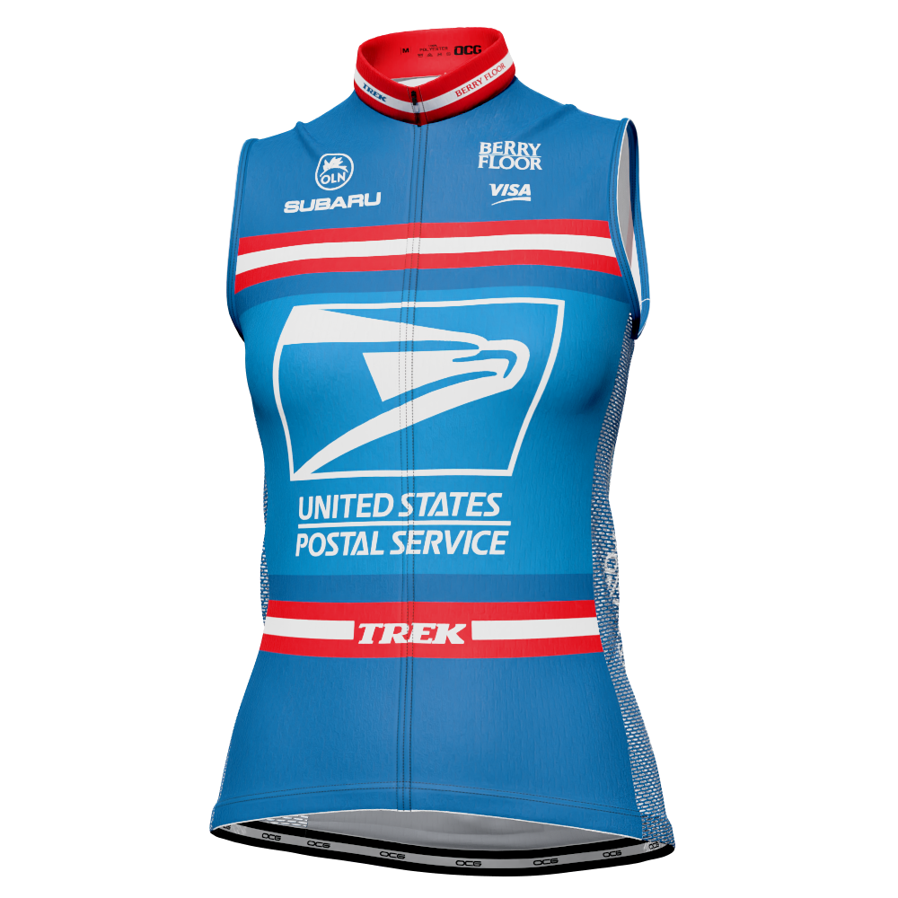 OCG presents the Women's Retro US Postal Sleeveless Cycling Jersey so you can roll up to your next ride in style and feel the comfort of a female cut jersey.
