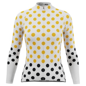 OCG and have come together to bring the Women's White Polka Dot Long Sleeve Cycling Jersey to keep you warm and protected on your next ride.