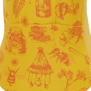 The Women's Winnie The Pooh Oh Bother! Short Sleeve Cycling Jersey features a moisture-wicking LEMBO 140 GSM polyester, cooling 110GSM mesh side panels, and reinforced stitched back pockets.